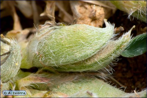 pelos blancos, basifijos. Hojas de 3-6 cm, imparipinnadas, con 8 a 11 pares de