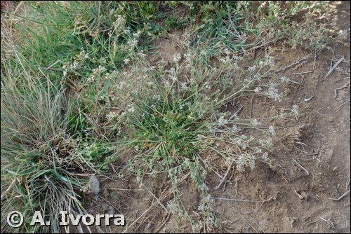 sin brácteas o una linear. Umbélulas con 6 a 10 radios, sin bractéolas. Flores actinomorfas, hermafroditas, pentámeras pétalos obovados, escotados, homogéneos, blanquecinos. Estilos más cortos o de igual longitud que el estilopodio, recurvados. Frutos subglobosos, algo comprimidos lateralmente, duros. Mericarpos con costillas primarias filiformes, prominentes.