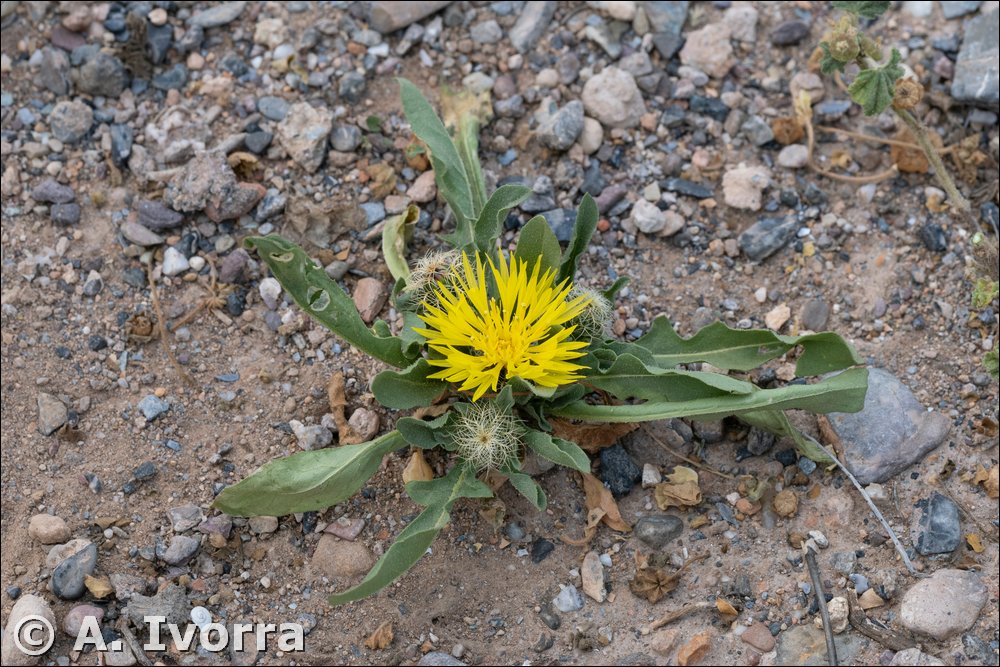 Hierba anual, hasta de 30 cm, a veces acaule, verde, vilosa. Tallos erectos, ascendentes o decumbentes, simples o ramificados desde la base. Hojas aglomeradas en la base, oblanceoladas o linear-lanceoladas, enteras, pinnatífidas o pinnatipartidas; las superiores sésiles. Capítulos terminales, solitarios. Involucro ovoide u ovoide-oblongo; brácteas glabras, verdes, las medias con apéndice apical patente o arqueado, no vulnerante,