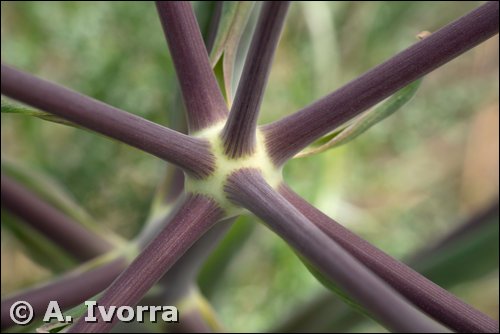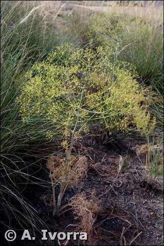 Hierba perenne, rizomatosa, heteranta, hasta de 120 cm. Tallos herbáceos, estriados. Hojas 5-6 pinnatisectas, con las divisiones foliares de último orden lineares, glabras las basales hasta de 50 cm, rosuladas, pecioladas las caulinares muy reducidas y esparcidas o inexistentes. Umbelas compuestas, en inflorescencias terminales paniculadas, con 7 a 15 radios, sin brácteas bractéolas caedizas. Flores actinomorfas, zigomorfas