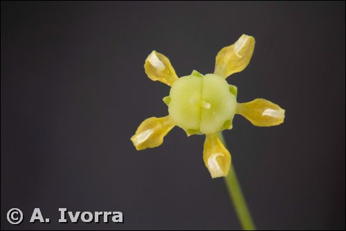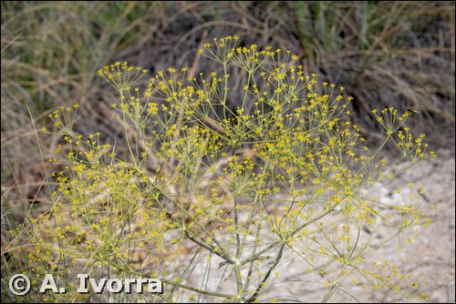 las del borde exterior de las umbélulas, hermafroditas en la umbela central, masculinas en las laterales, pentámeras pétalos amarillos. Frutos obovoideos o elipsoideos, muy comprimidos dorsalmente. Mericarpos con las costillas dorsales gruesas, las comisurales aladas.