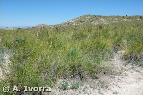 en substrato calcáreo-arcilloso o yesífero. Se distribuye por las zonas semiáridas de la península ibérica: depresión del Ebro, S de Madrid y otras localidades dispersas en Andalucía y Comunidad Valenciana. En Almería se conoce una sola localidad en María.