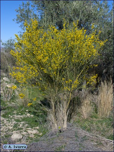 m de porte y aspecto retamoide. Tallos estriados, con 8-10 costillas. Hojas alternas, estipuladas, unifolioladas; folíolo