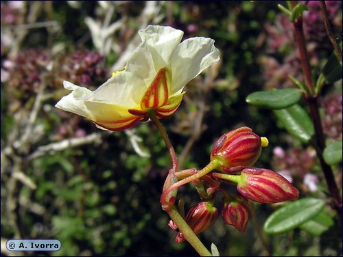 Helianthemum x mariano-salvatoris junto a sus progenitores: H alypoides y H. almeriense