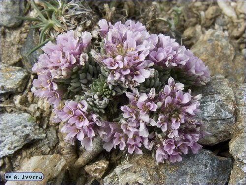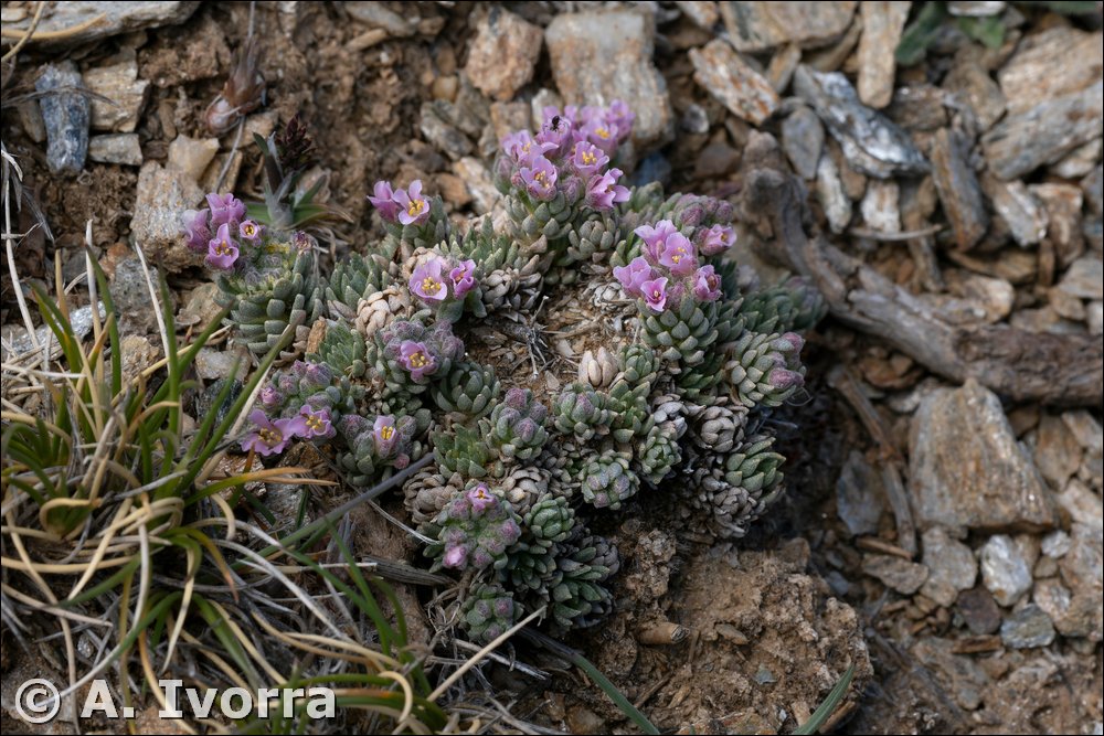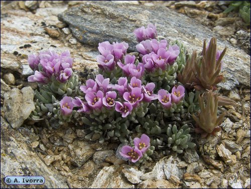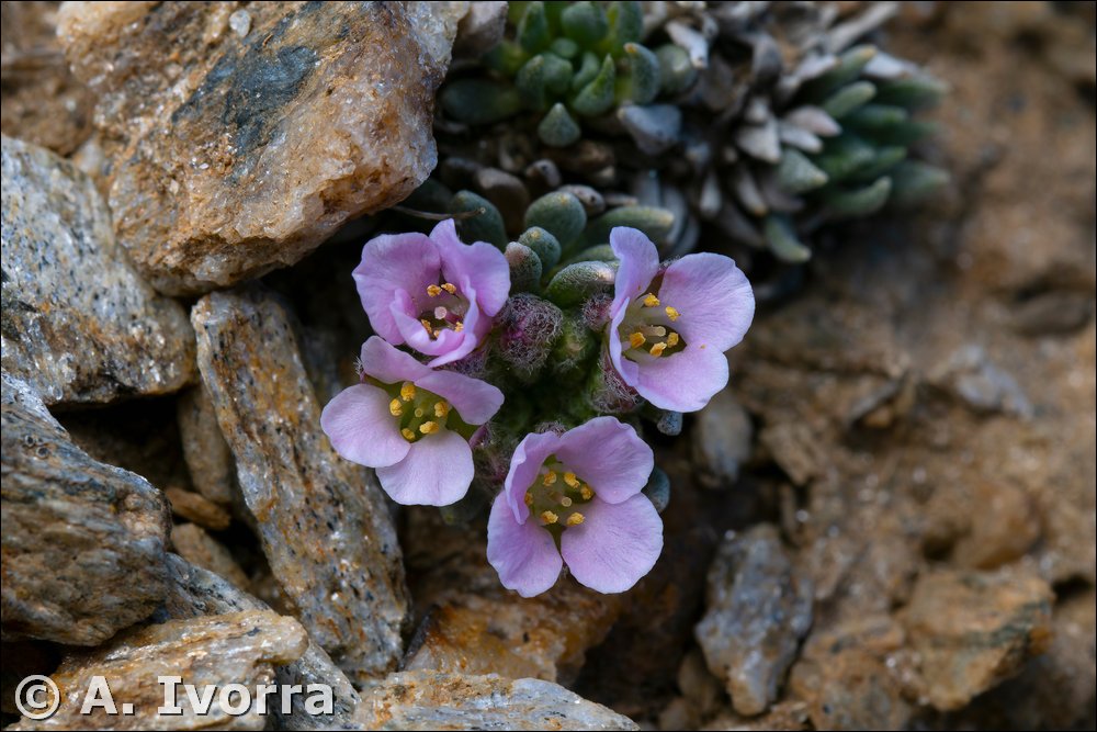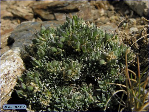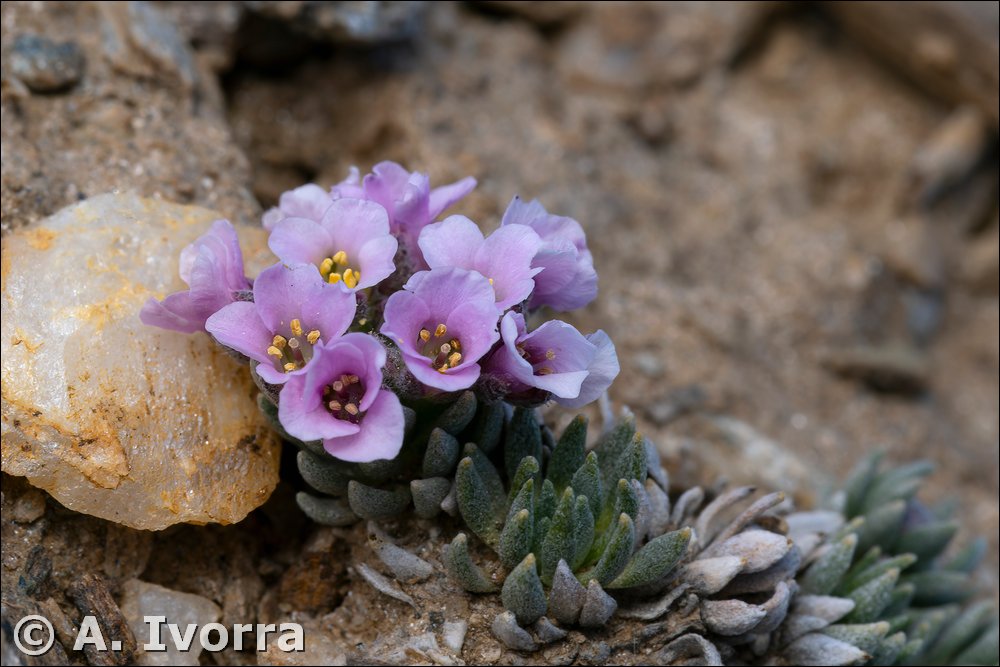 Vive en roquedos y pedregales silíceos, de 2000 a 3400 m de