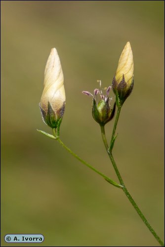 a blanquecinos. Estigmas capitados. Cápsula igual o algo mayor que los sépalos,