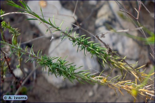 sufruticosa, de procumbente a erecta, hasta de 50 cm. Hojas alternas, sentadas,