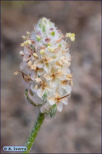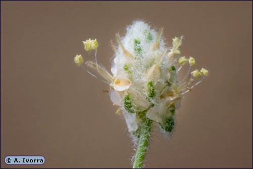 y antrorso, con espiga terminal ovoidea, compacta, lanosa, con abundantes pelos