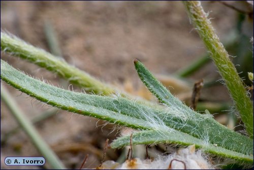 cm, acaule, escaposa. Hojas en roseta basal, de linear a linear-lanceoladas,