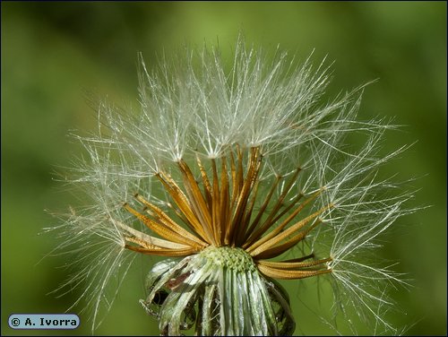 Frutos en aquenio, marrones, estriados longitudinalmente, con vilano blanco de