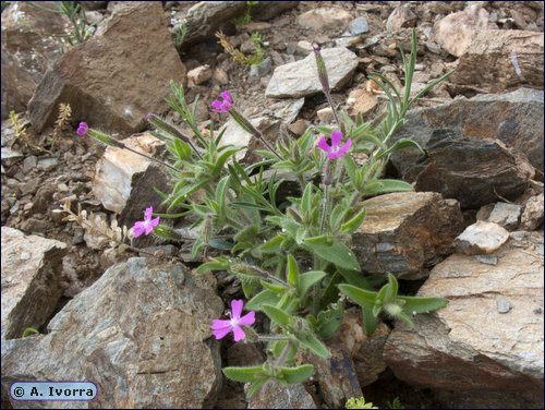 Vive en pastos, sobre esquistos. Se distribuye por el NW