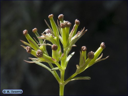 Planta perenne, hasta de 25 cm., rizomatosa, multicaule, cespitosa. Tallos simples, erectos, glabros o esparcidamente pelosos. Hojas pecioladas, las basales oblanceoladas, espatuladas o anchamente obovadas, enteras; las medias y superiores de pinnatífidas a lirado-pinnatipartidas, con 1 a 3 pares de segmentos laterales, el terminal algo más grande. Inflorescencia más o menos condensada, con brácteas linear-lanceoladas y bractéolas lanceoladas o triangular–lanceoladas, glabras o laxamente ciliadas.