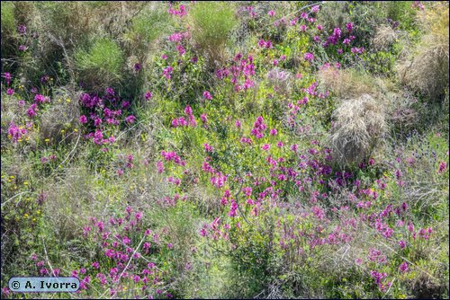 Vive en herbazales, prados, colinas, matorrales, pastizales secos.