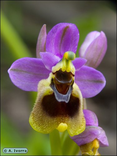 El término específico deriva del griego, tenthredon (avispa) y del latín pherum (que lleva, portador), en alusion a la forma de las flores. De nombre vulgar "flor de avispa", "abejera". Es una planta bastante frecuente en Almería, llamando la atención por su gran belleza.