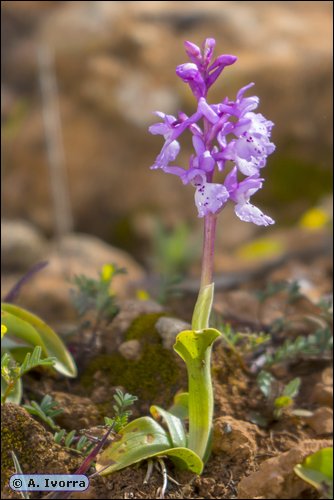 Planta parecida a Androrchis olbiensis (Orchis mascula subsp. olbiensis),